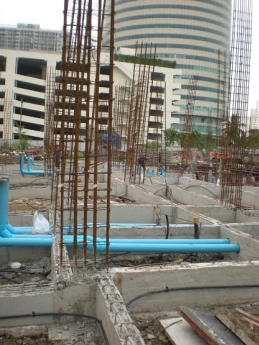 ติดตั้งท่อ HDPE ตามแนวคานภายในทุกคาน